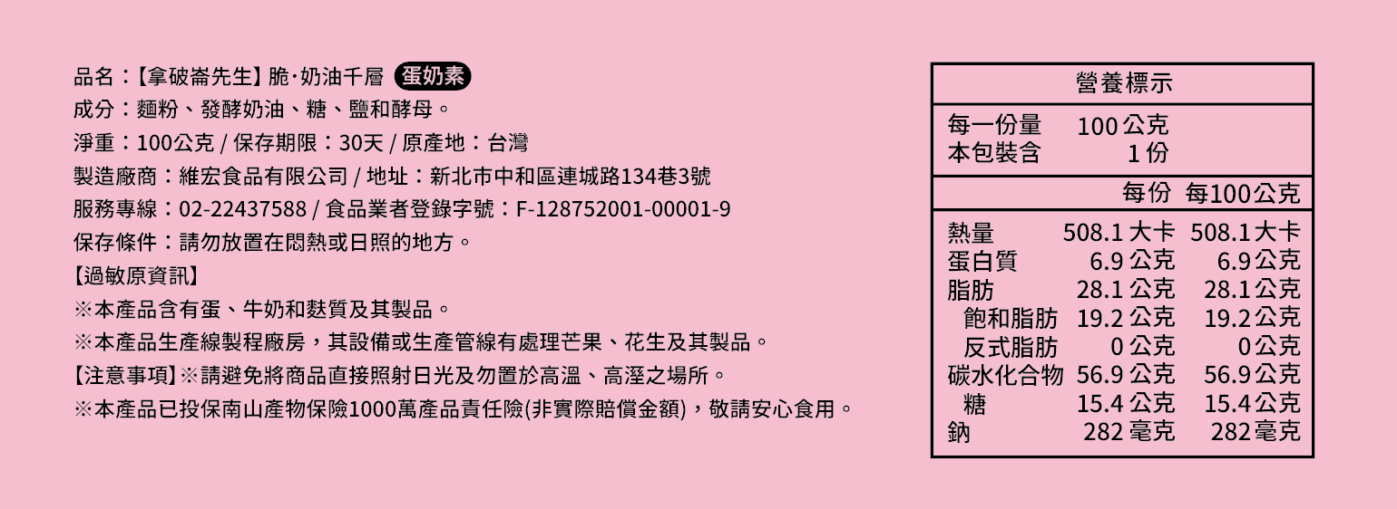 【拿破崙先生】脆.奶油千層●經典奶油●有一種酥脆感,是外酥內軟的酥脆